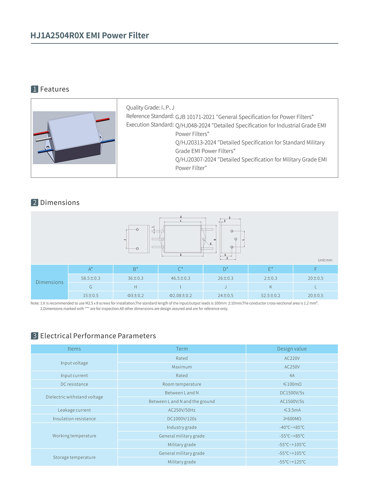 Product Description Single-phase AC Lead-type EMI Filter Series