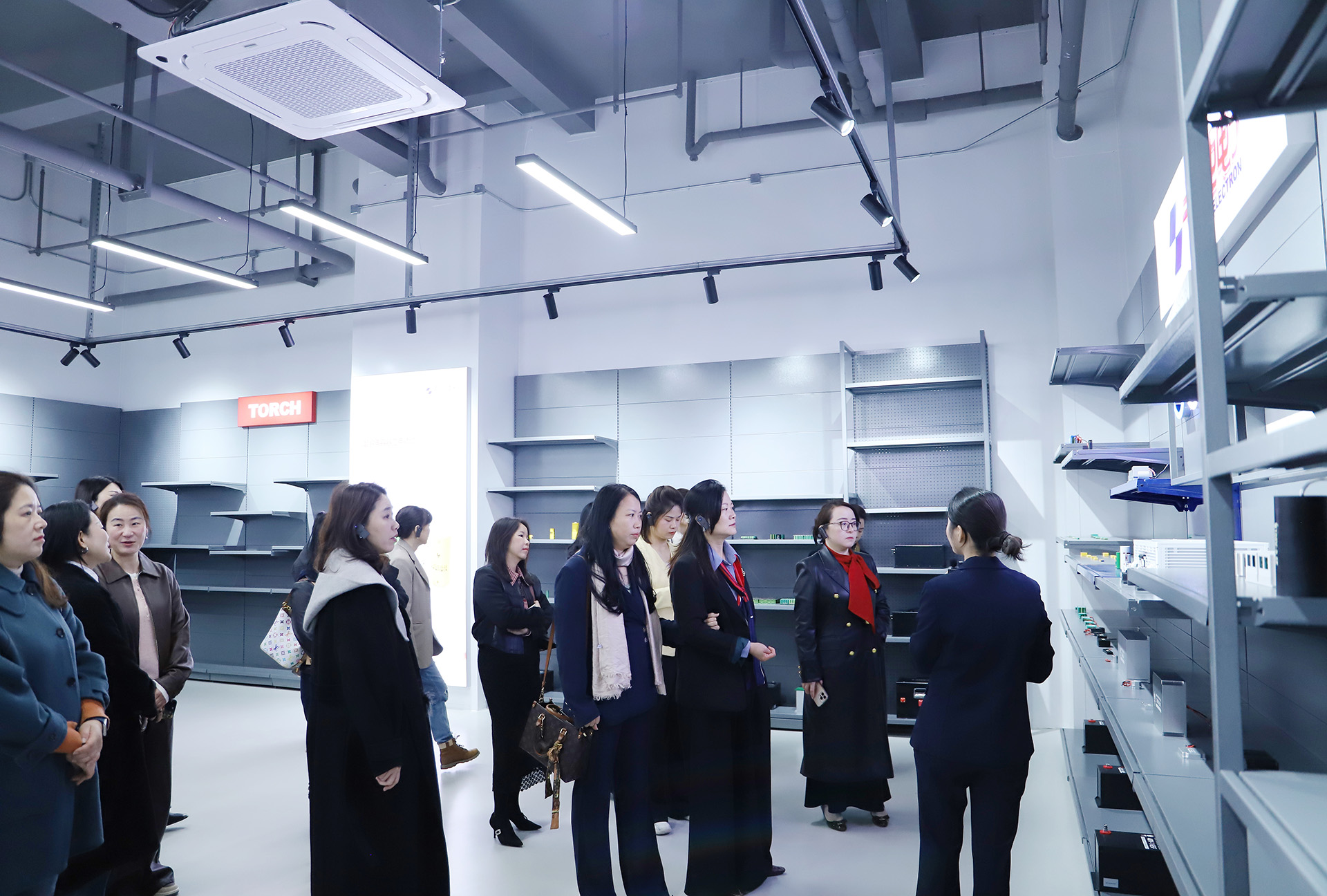 Led by Hong Liling, Chair of Torch Electron's Women's Committee, the delegation toured the company's Production Building Exhibition Hall, the multi-shuttle automated warehouse at Zihua Park, and the Supercapacitor First-Piece Exhibition Center. Through the visit, guests gained a closer look at Torch Electron's progress in industrial development, technological innovation, and intelligent manufacturing.